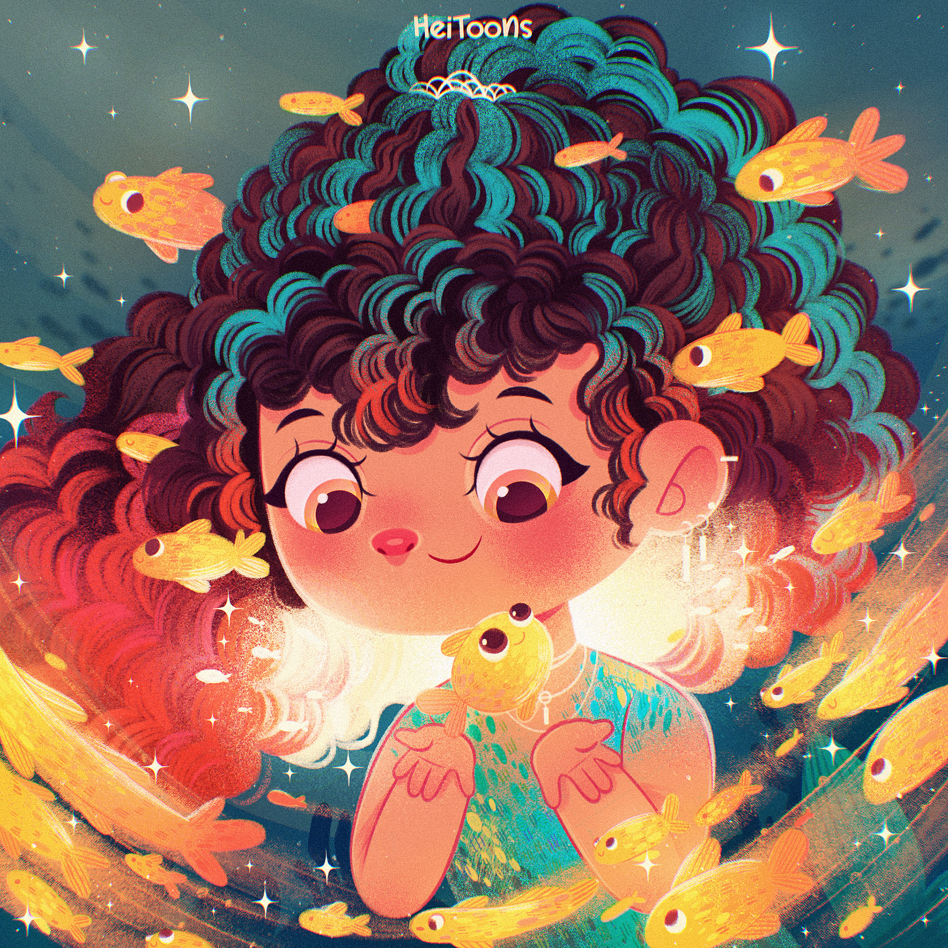 EN - Illustration of a beautiful mermaid, accompanied by bright and colorful fish, following the theme of #mermay2024 by @brendabossato. I loved bringing out the vibrant colors and capturing all the magic in a single illustration! Check out more details below.